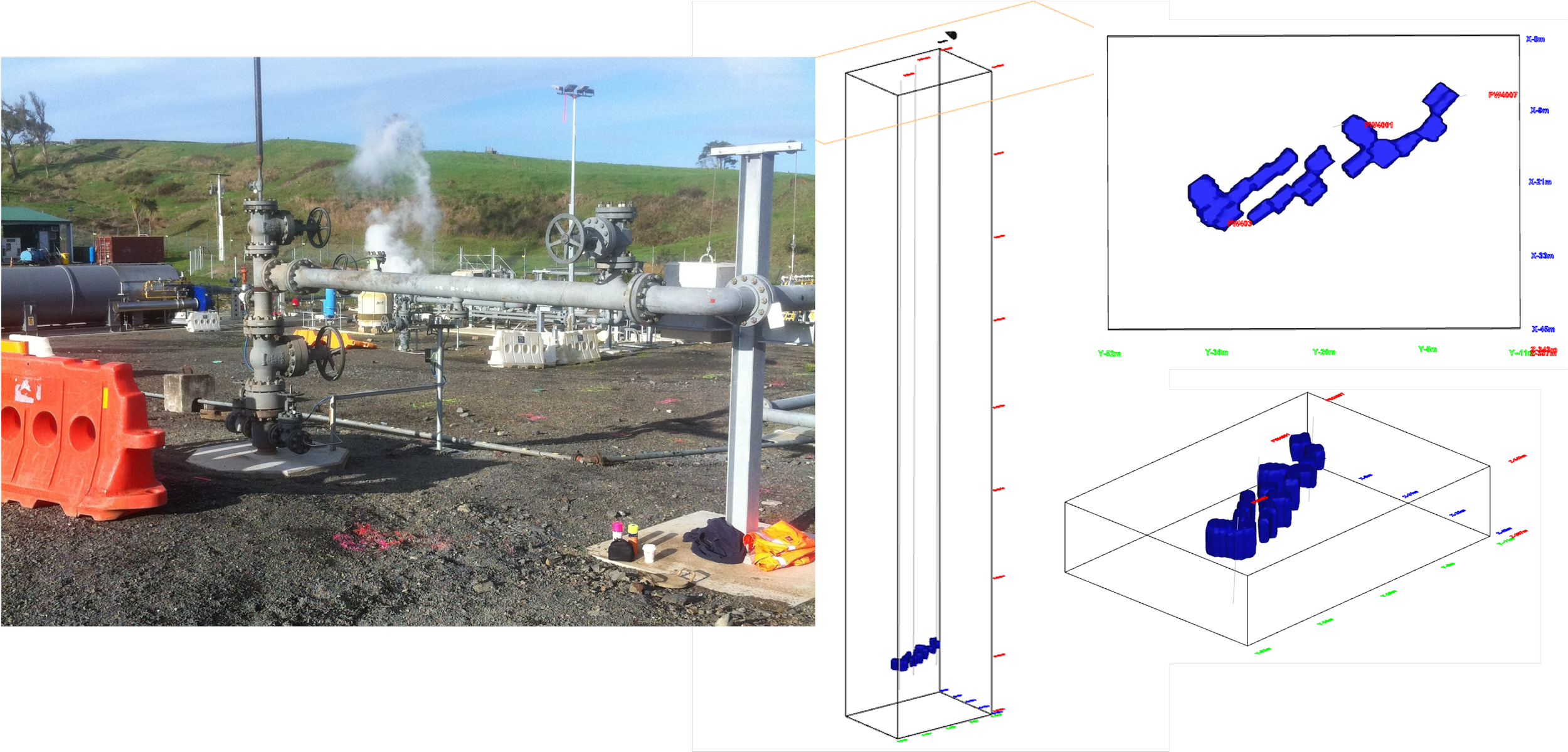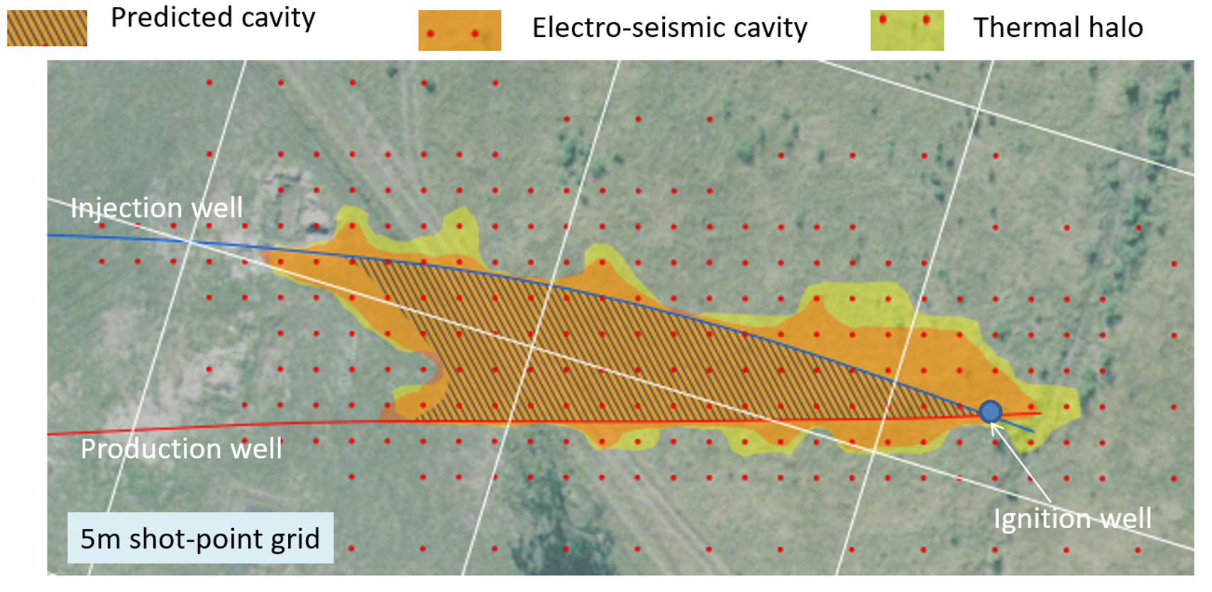 This project was conducted to delineate the shape and position of a UCG project in New Zealand. Formation temperature was used to delineate the UCG chamber cavity. The data indicated that the cavity had burnt along the feed lines and had not formed as expected.