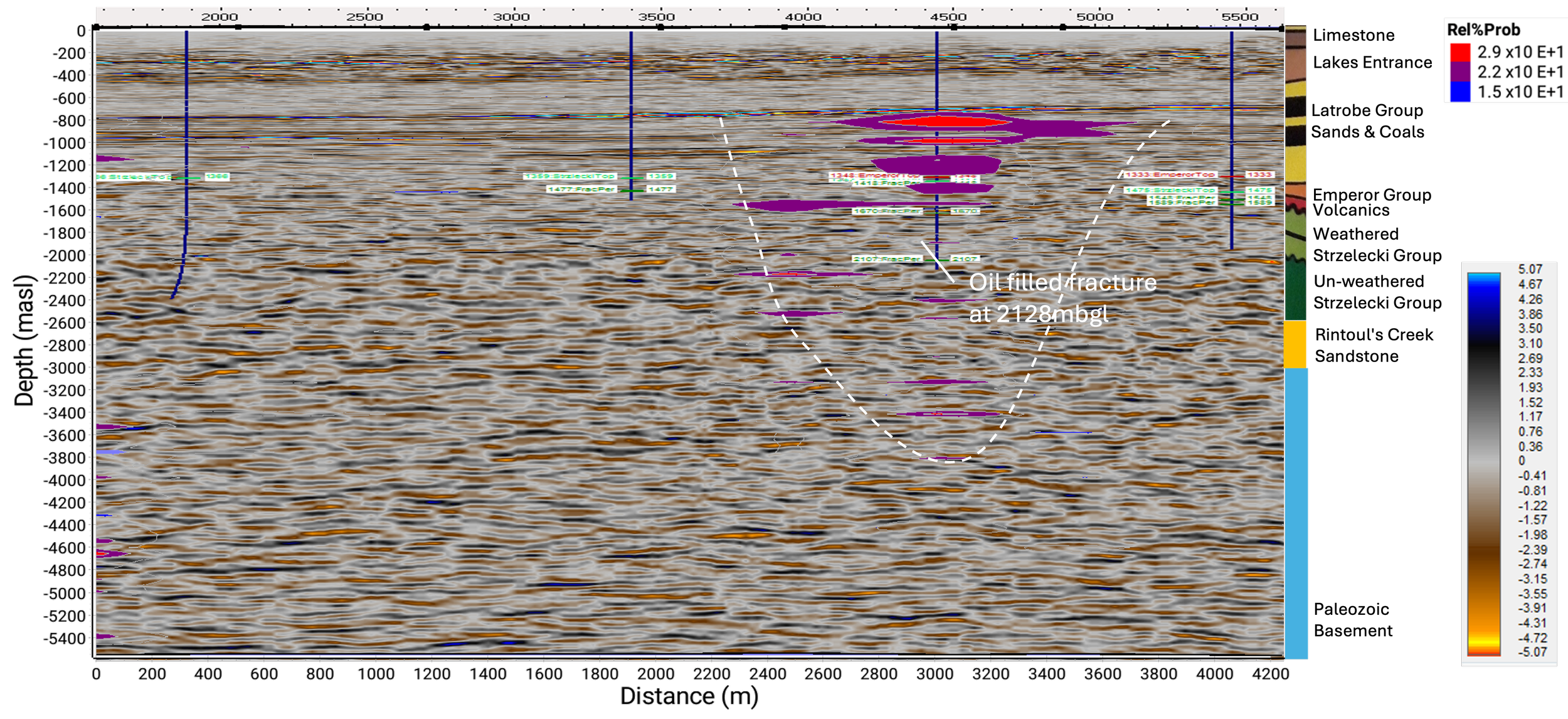 An analysis of the site oil indicator data shows unusually localized oil indicators situated around Well 3, mostly within the Latrobe coal seams, but also extending down to a depth of 3,000 meters below surface level. As Well 3 is the only well on the site that showed oil signs at a depth of 2,100 meters below surface level, there does appear to be a basis for interpreting a localized oil reservoir around Well 3.