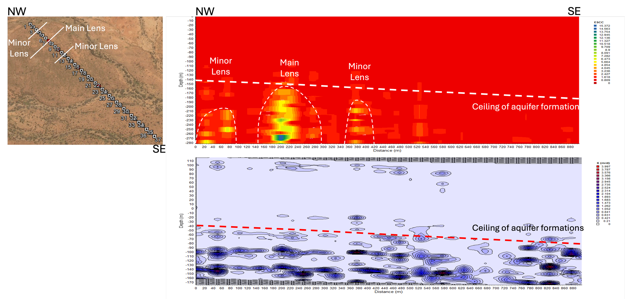 This project was conducted to delineate lensing of uranium, transported from the hills to the North-West of the site to the lower areas in the South-East, through underlying aquifer systems. The data clearly shows three lens structures that are to be mined for uranium.